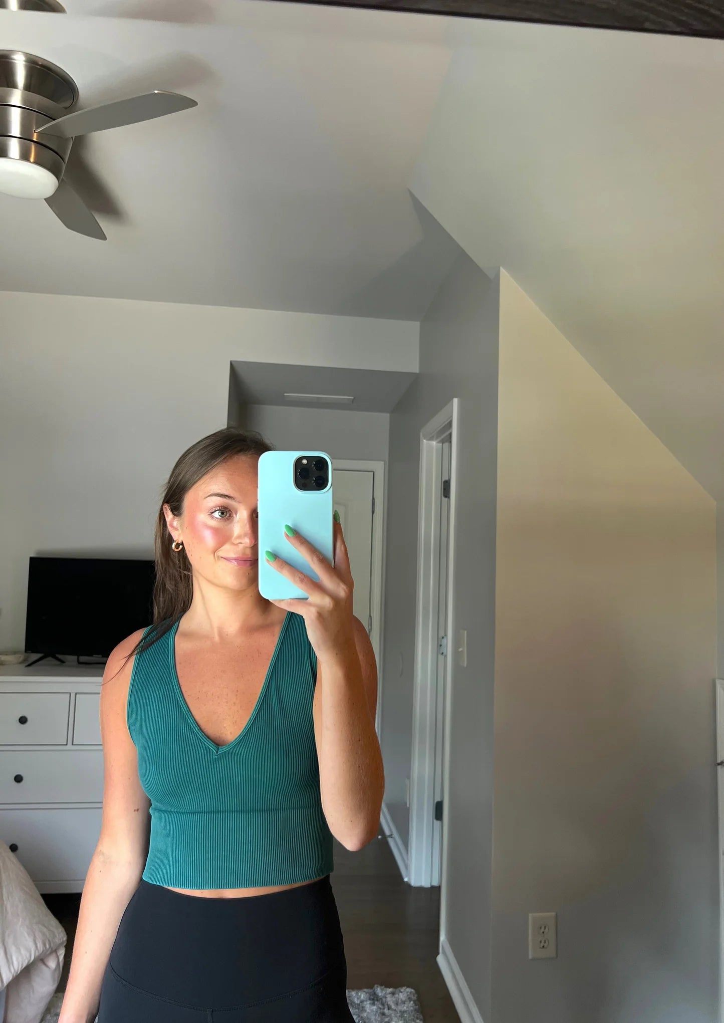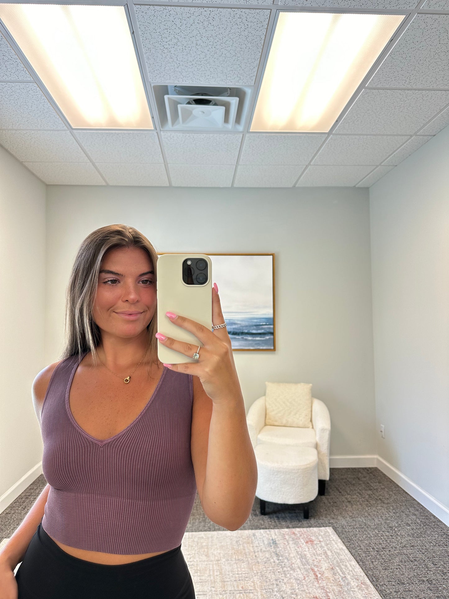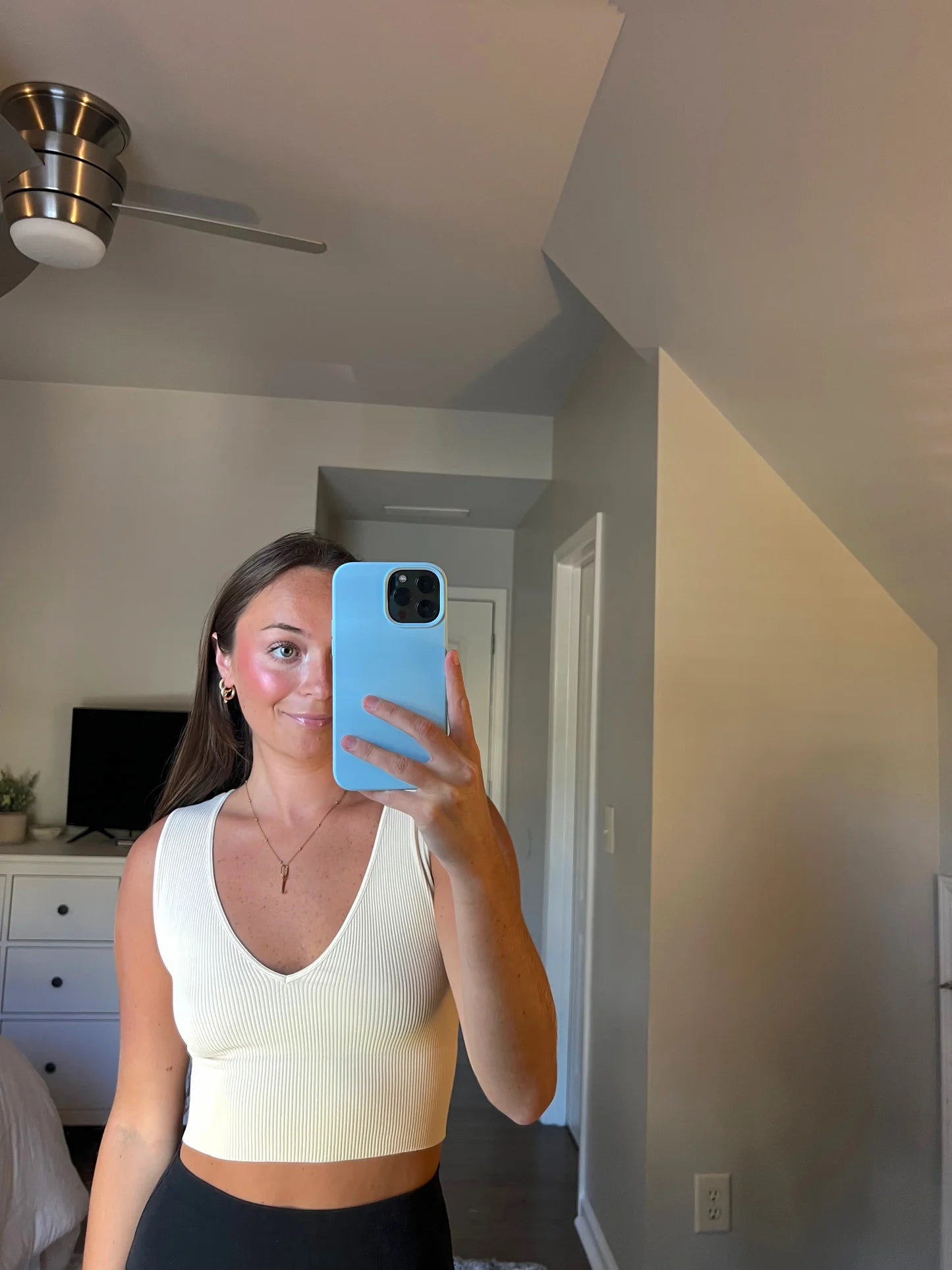- A ribbed knit crop top featuring a plunging v-necklline.